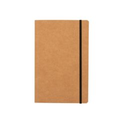 Caderneta com páginas quadriculadas, produzido em material kraft com frente e verso liso e fita elástica para fechar. Contém aproximadamente 80 folhas marfim quadriculadas.