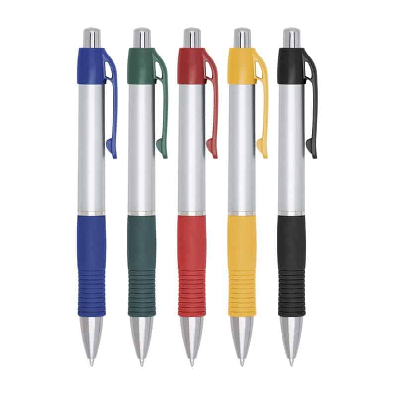 CANETA PLÁSTICA SPX-03011D-PRA/PRE NA COR PRATA