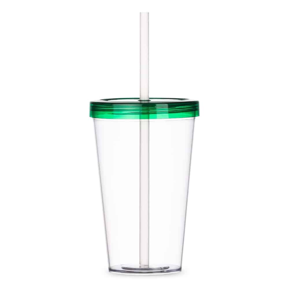 COPO C/ TAMPA E CANUDO SPX-P@14505-TRA/VD NA COR TRANSPARENTE