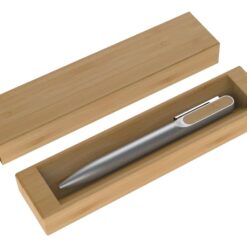 Estojo de papel para uma caneta com acabamento similar a bambu. OBS.: IMAGEM MERAMENTE ILUSTRATIVA, NÃO ACOMPANHA CANETA.