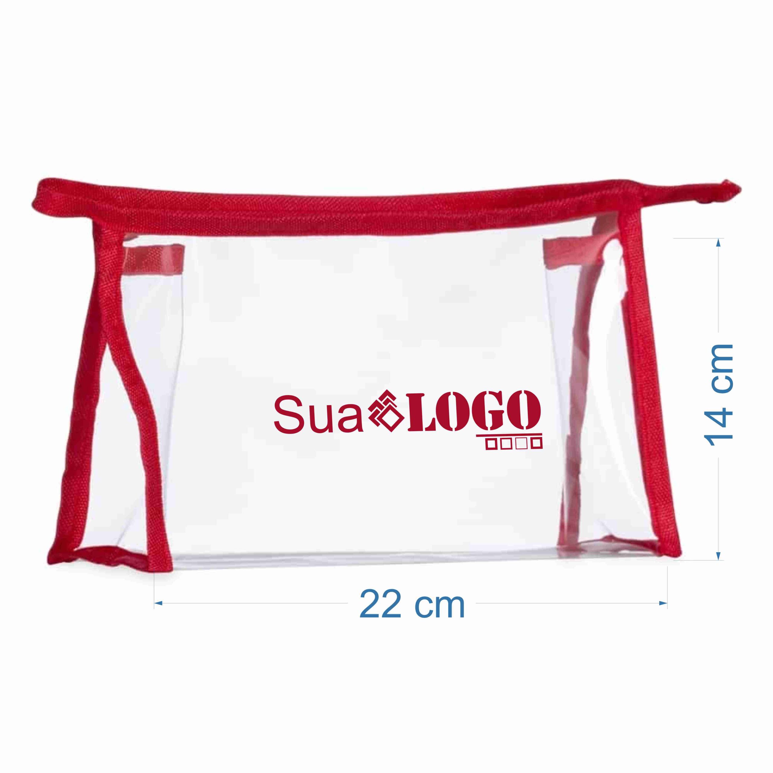 Necessaire plástica transparente com detalhe colorido em nylon.