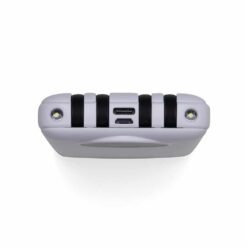 Carregador portátil de 10.000mAh com display digital indicador de bateria, contém duas lanternas de led e quatro cabos de saída acoplados, sendo: saída Lightning, saída Tipo-C, saída V8 e saída USB. O carregador possui uma porta USB dupla (entrada e saída) com carga rápida e outras duas portas de entrada: V8 e Tipo-C. Acompanha cabo USB.